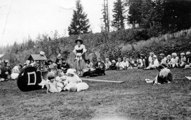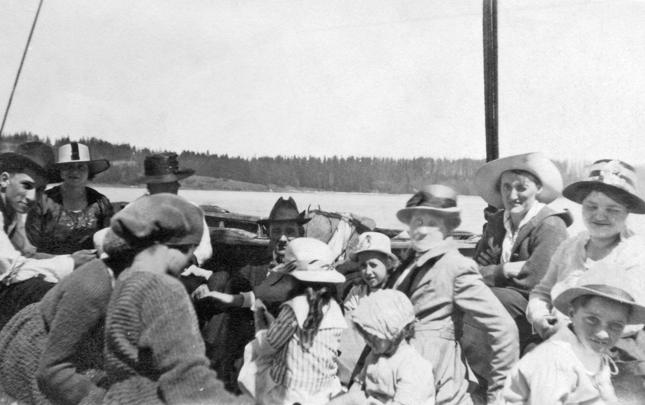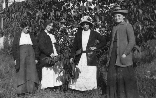 From left: Margaret Robertson, Margaret Middleton (daughter of Bert Middleton and niece of Harry M.), Anna Manson (visiting Mrs. David Robertson), Duncan Robertson, and Alan Robertson. Photo taken July, 1916 in Whaletown on Cortes Island.