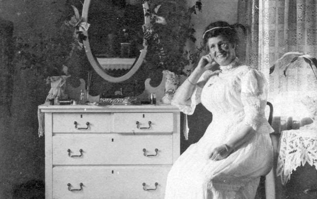Margaret Anderson was the wife of W.E. Anderson. The Anderson family owned and operated the Quathiaski Canning Co. which operated at Quadra Island. This portrait was probably taken at the same time as the portrait of W.E. Anderson (catalog no. 19534) in the 1940s.