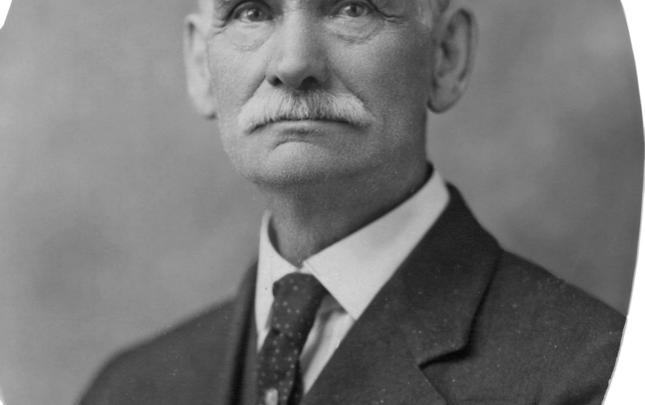 Written on the back of the photograph by Agnes: "Taken unaware while counting the buds on my lilac bush." Henry and Agnes Twidle were early settlers at Granite Bay.
